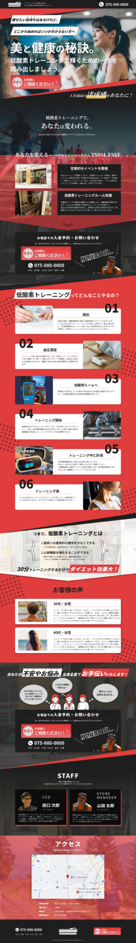 架空のパーソナルトレーニングジムのランディングページを制作しました。